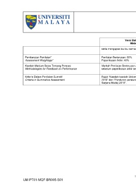 Criteria in Summative Assessment 2019” dan “Peraturan-peraturan Universiti Malaya (Ijazah Degree) Rules 2019 and University of Malaya (Bachelor's