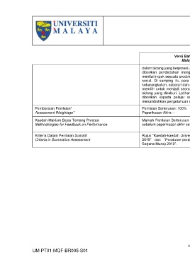Criteria in Summative Assessment 2019” dan “Peraturan-peraturan Universiti Malaya (Ijazah Rules 2019 and University of Malaya (Bachelor's Degree)