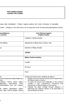 Tajuk Kursus* Industri Kreatif Melayu Malay Creative Industry