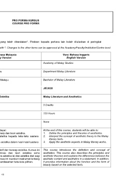Tajuk Kursus* Kesusasteraan Melayu dan Estetika Malay Literature and Aesthetics