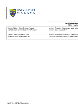 Criteria in Summative Assessment “Peraturan-peraturan Universiti Malaya (Ijazah Sarjana Muda) 2019”. and University of Malaya (Bachelor’s Degree) Regulations 2019.