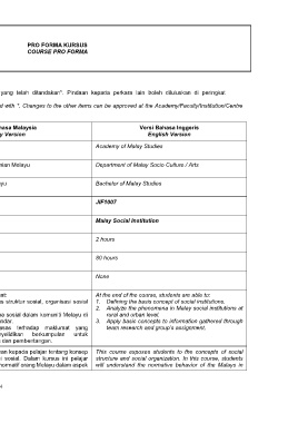 Tajuk Kursus* Institusi Sosial Melayu Malay Social Institution