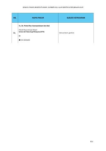 SENARAI PAKAR UNIVERSITI AWAM | SUMBER ASLI, ALAM SEKITAR & PERUBAHAN IKLIM