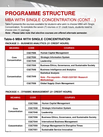 MBA WITH SINGLE CONCENTRATION (CONT…)