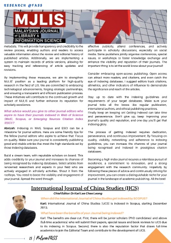 (full-time academics) who will submit their papers, special issues and book reviews to IJCS due